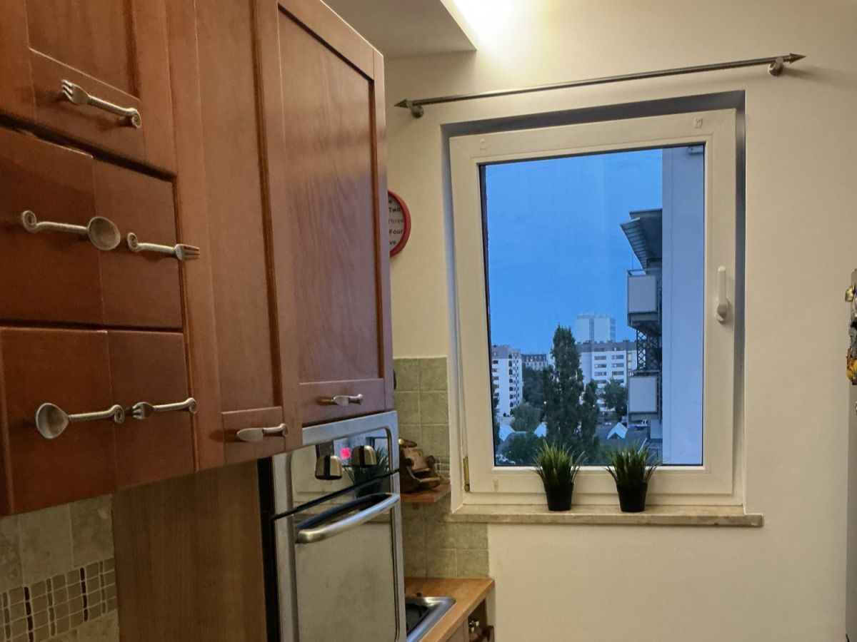 - Apartament z oddzielną kuchnią z oknem i ładnym widokiem na teren zielony.